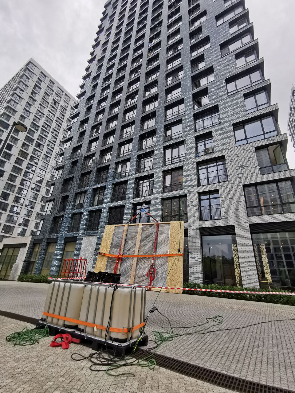 Команда промышленных альпинистов К5 успешно выполнила комплекс работ по подъёму и перемещению плит керамогранита для интерьерных решений в жилом комплексе «Кутузовский».